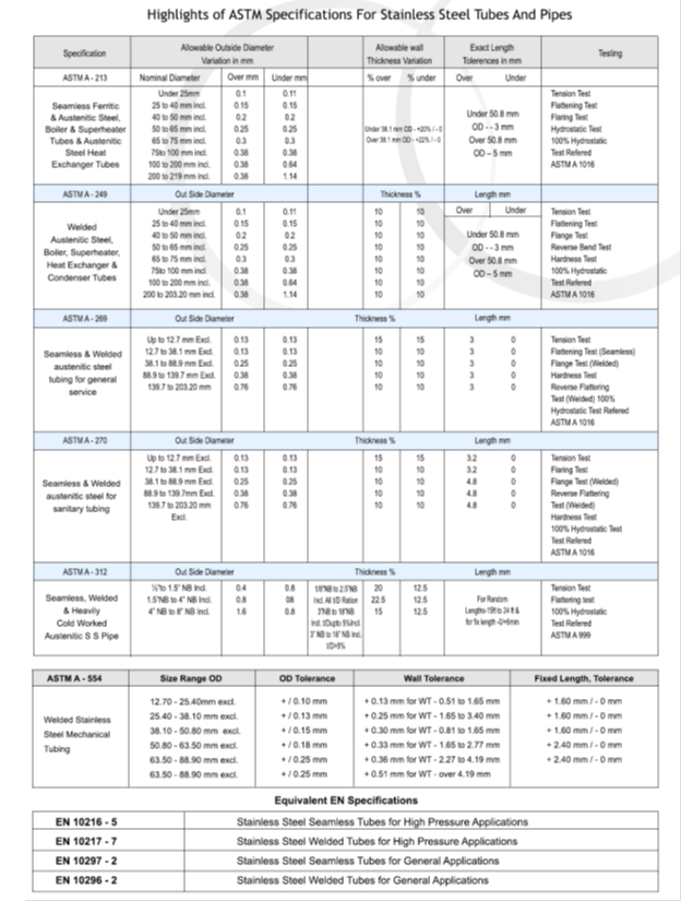 Highlights of Astm Specification For Stainless Tube And Pipe